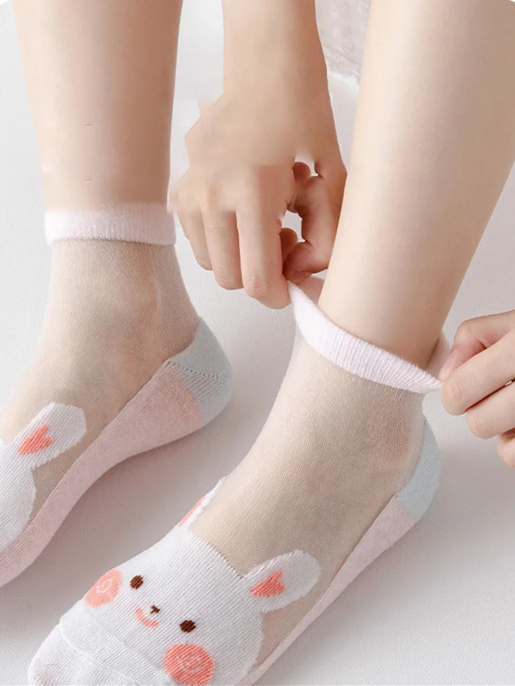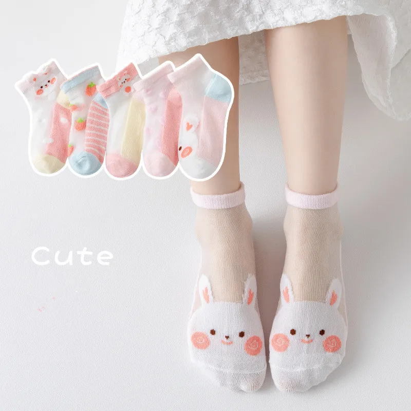 5Pairs/Lot Summer Soft Cotton Girl Socks Breathable Children Short Ankle Socks Kids Lace Princess Mesh Cartoon Socken